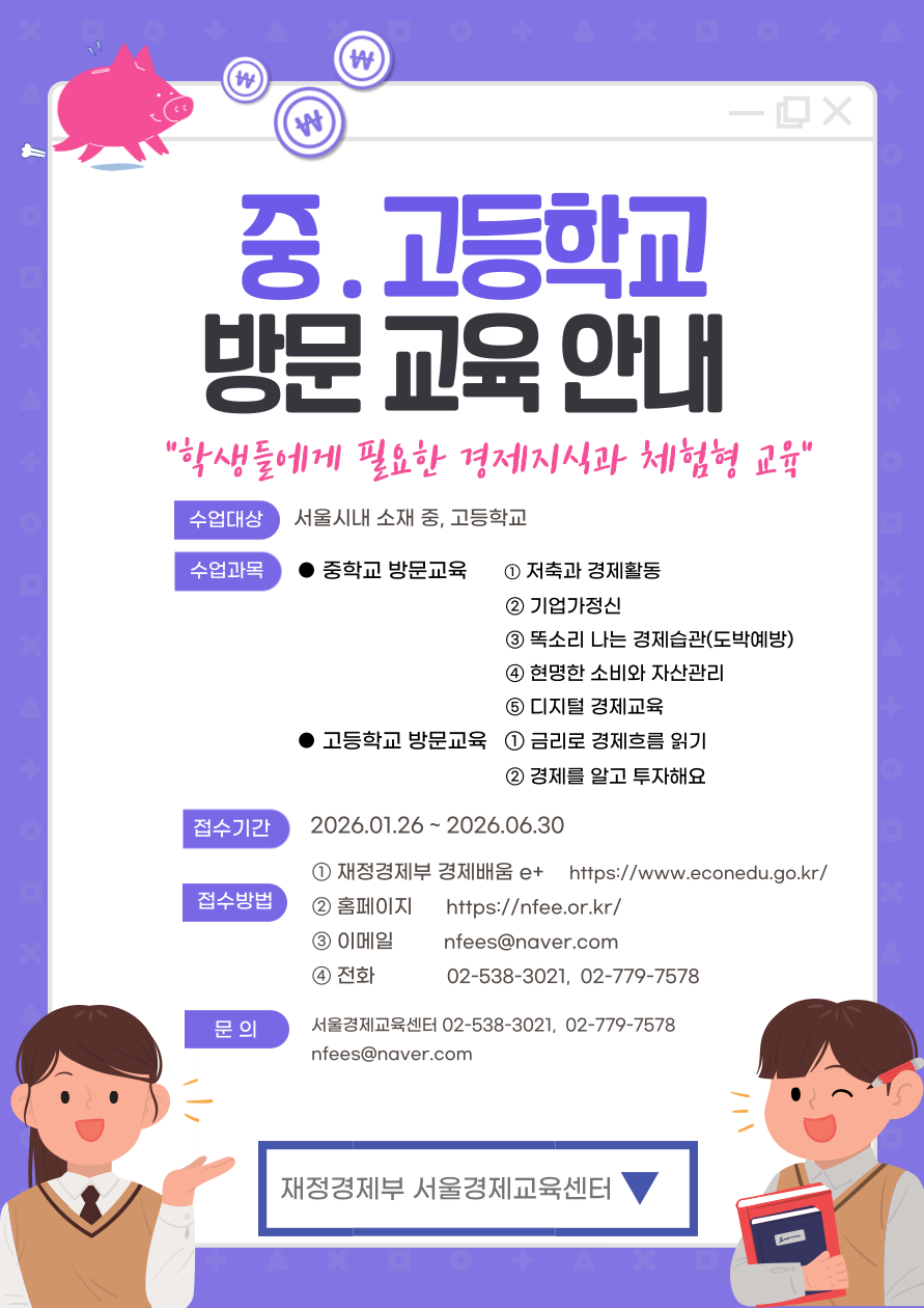 2026년 중.고등학교 방문 경제교육 신청 안내
